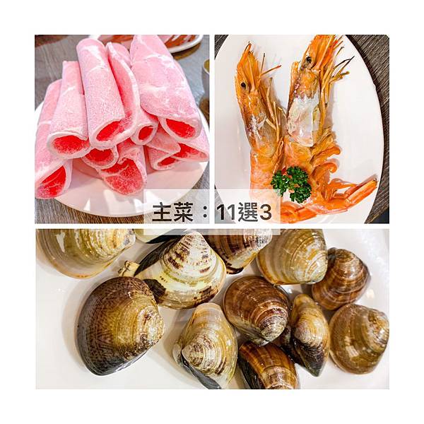 (主餐(11選3):豬肉片、天使紅蝦、蛤蠣)