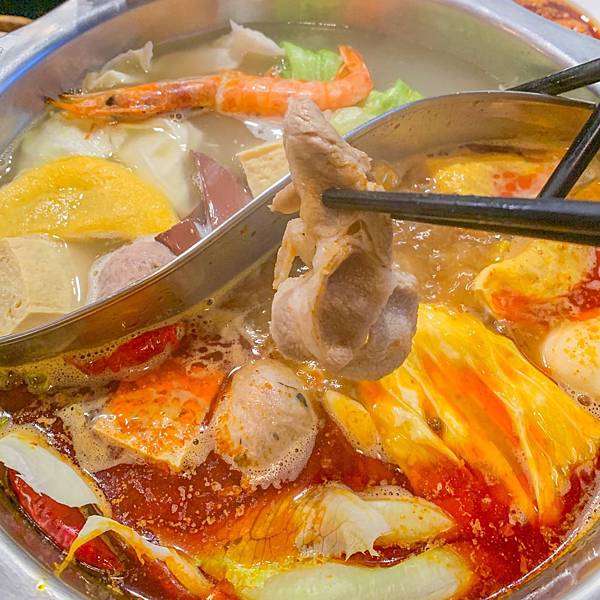 很適合兩人一個吃辣一個不吃辣的好搭配~麻辣鍋是偏香麻口味的四川辣度,