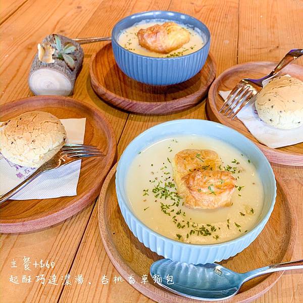 濃湯是起酥巧達濃湯,湯中有附上酥脆的起酥麵包,非常搭!