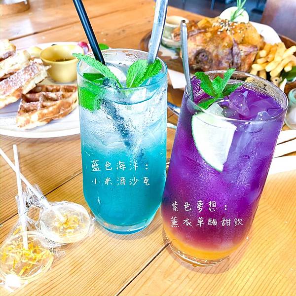 這杯是加入小米酒特製而成的藍色海洋,以氣泡飲沙瓦的方式調製,愛喝酒的人一定會喜歡🤗