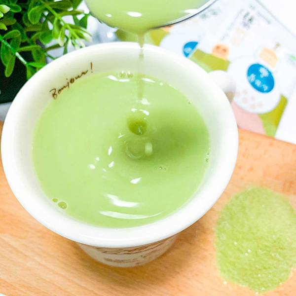 🔺熱水泡:熱水泡開攪拌後,滿滿的抹茶香氣撲鼻而來~~~