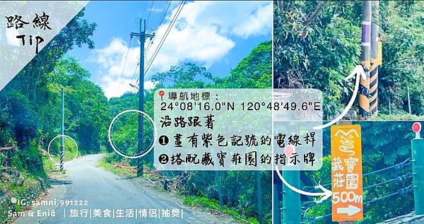 跟著這個地標開到開始進入山路之後只要一看到畫有紫色記號的電線桿,就可以開始忽略導航啦!!!!