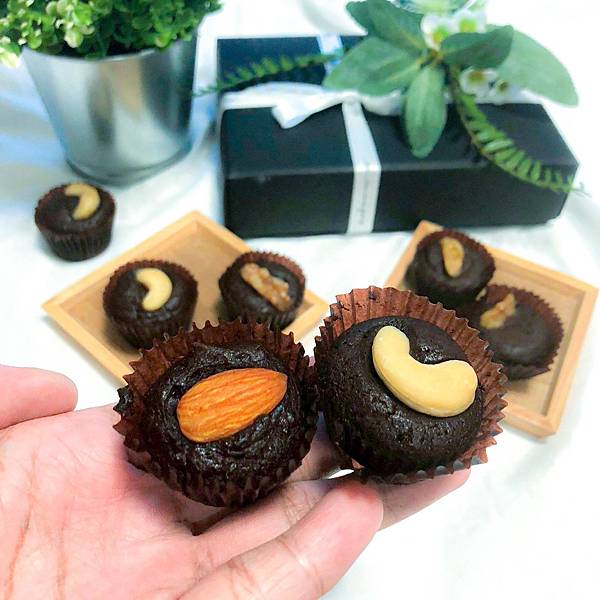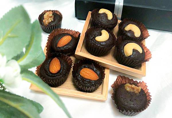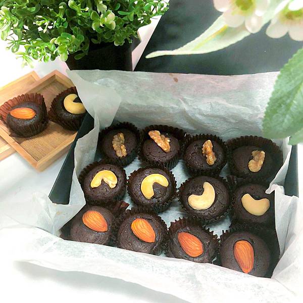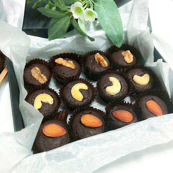每顆布朗尼上也都有一顆堅果~看起來真的好療癒阿~