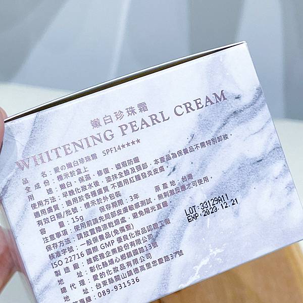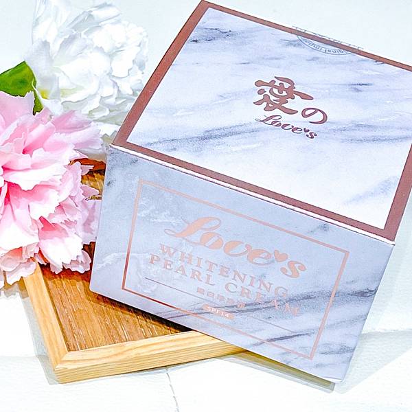 愛の嫩白珍珠霜是裝在一個大理石紋的方形紙盒內~