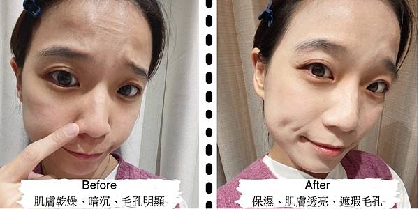 對於臉部暗沉的地方、黑眼圈都提亮了,毛孔也被遮蔽了,效果真的超乎預期的很不錯!![]()