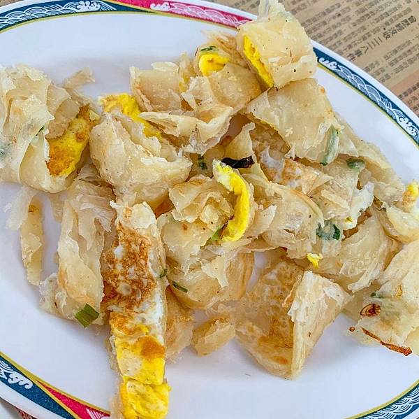 一整張的蔥抓餅!裹著蔥蛋~非常好吃!