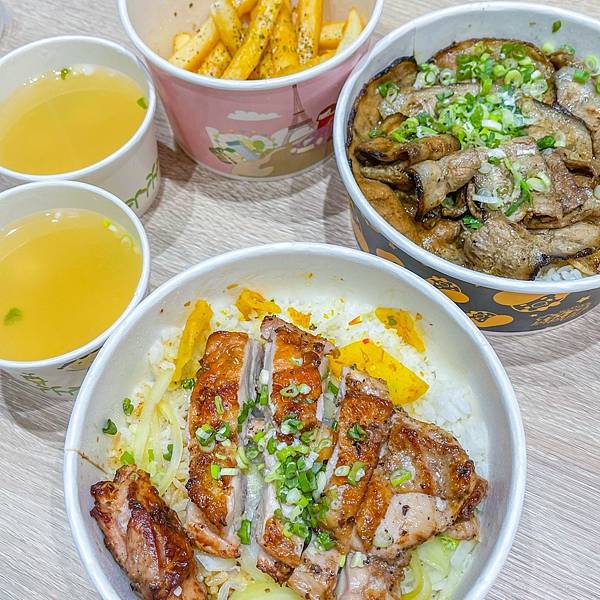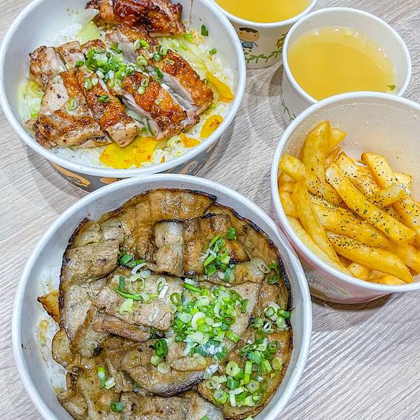這次我們點了兩個飯、一個薯條,還有餐點本身就會免費附贈味僧湯~