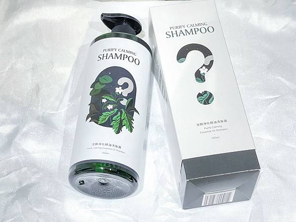 「?」問號包裝的洗髮露,裡面有三種精油:茶樹、尤加利、快樂鼠尾草精油