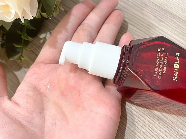 這款護色護髮油的顏色也是透明無色的,質地是偏油狀的質地!但不會到油膩~