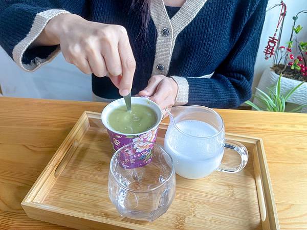 攪拌之後,自製的客家擂茶鮮奶茶就完成啦~![]()