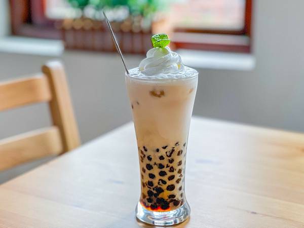 底層有軟Q的珍珠,搭配鮮奶茶,最上層還有蓋上鮮奶油!