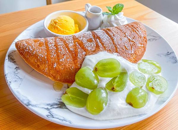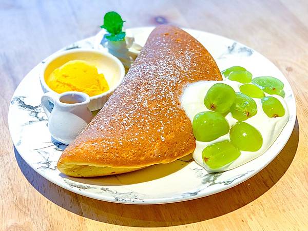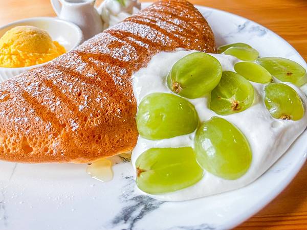 舒芙蕾上水果的部分是選用當季季節水果,當天吃到的是葡萄~🥰