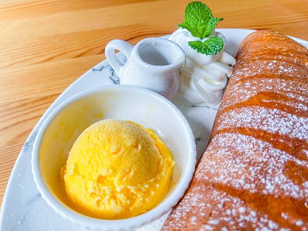 搭配鮮奶油、水果、冰淇淋,還有淋上一旁附上的蜂蜜,就是一道蠻有飽足感的下午茶甜點啦❤️