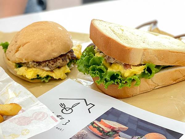 裡面的豬肉排和一般早餐店的漢堡排吃起來不一樣唷!