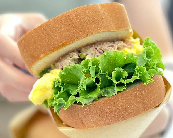 裡面包著大大的生菜🥬、炒蛋、鮪魚內餡!