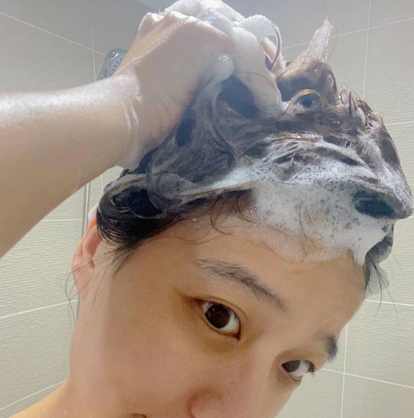按摩搓洗後,我會把泡沫多停留在頭皮上 3~5 分鐘,