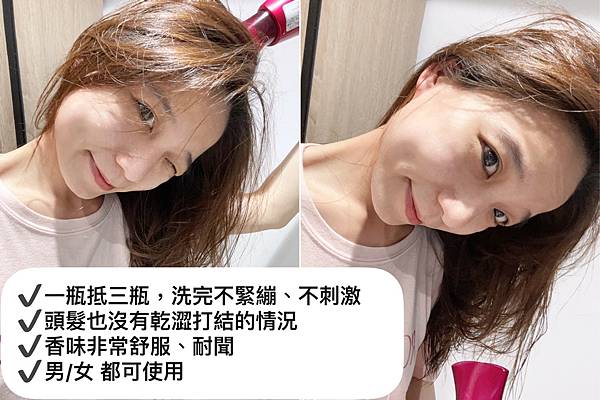 洗完之後會覺得皮膚被洗得很乾淨!但也不會覺得緊繃乾澀~👍